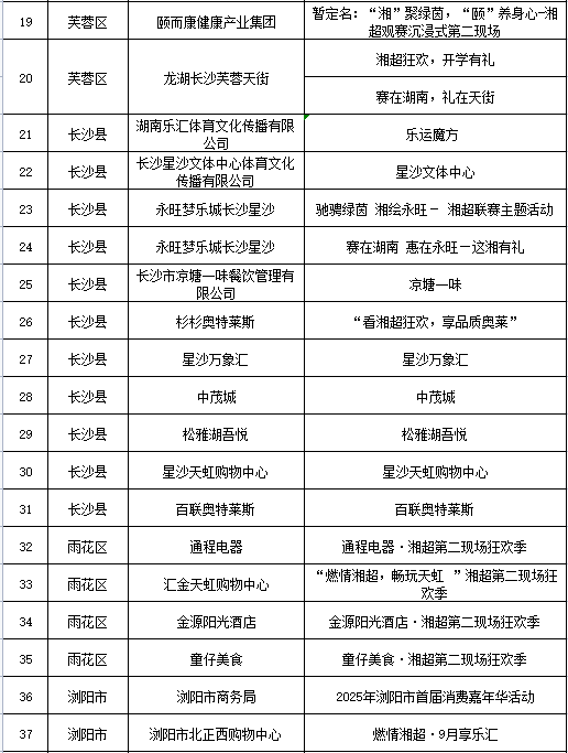 △2025湘超联赛长沙赛区“第二现场”促消费活动汇总表(持续更新,以主办方信息为准)。